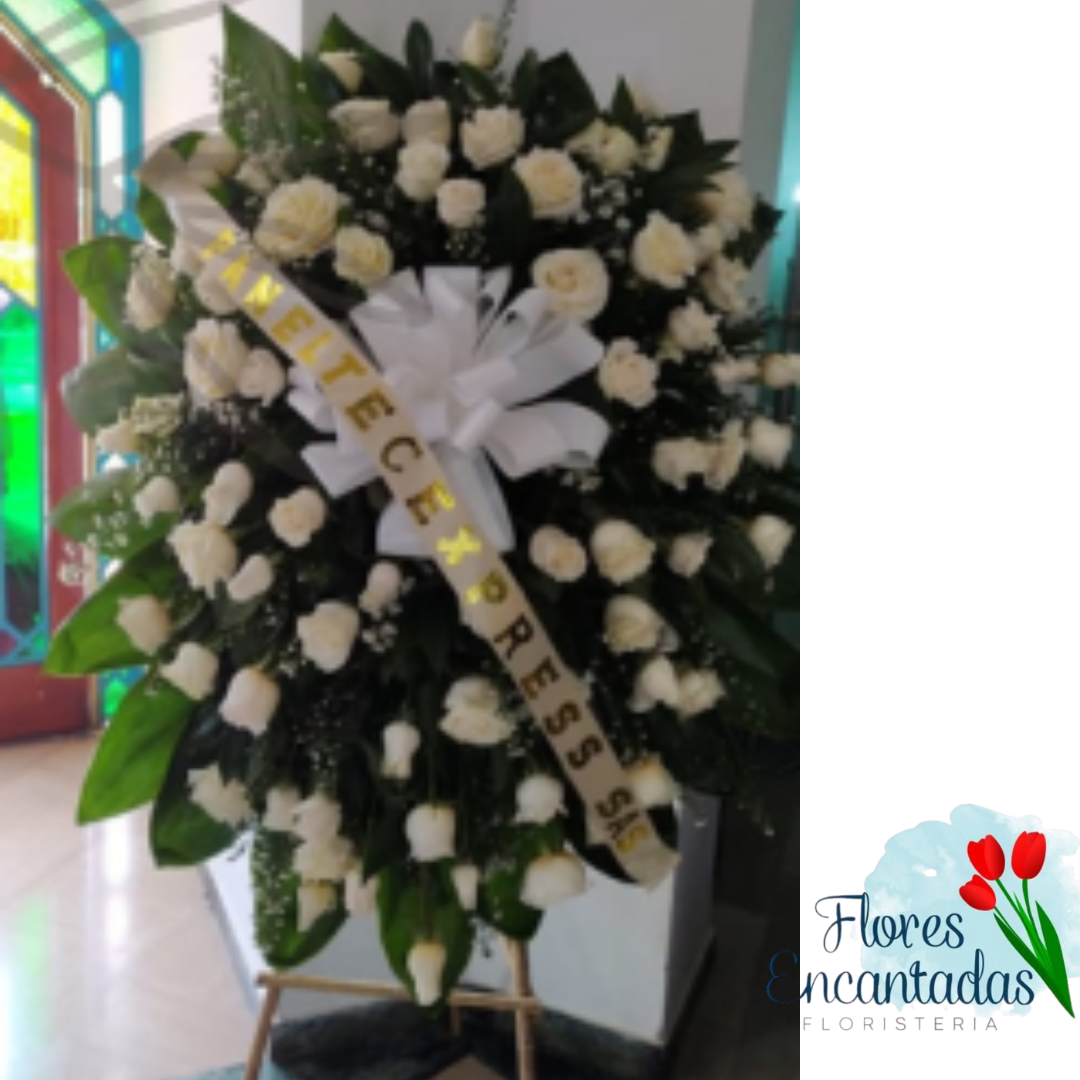 Ofrece tus más sinceras condolencias a la familia de ese ser que ha partido, envía este hermoso pedestal que contiene 50 rosas en tonos amarillos y follajes verdes. Las flores son la forma mas clara de transmitir los sentimientos en esta triste ocasión.